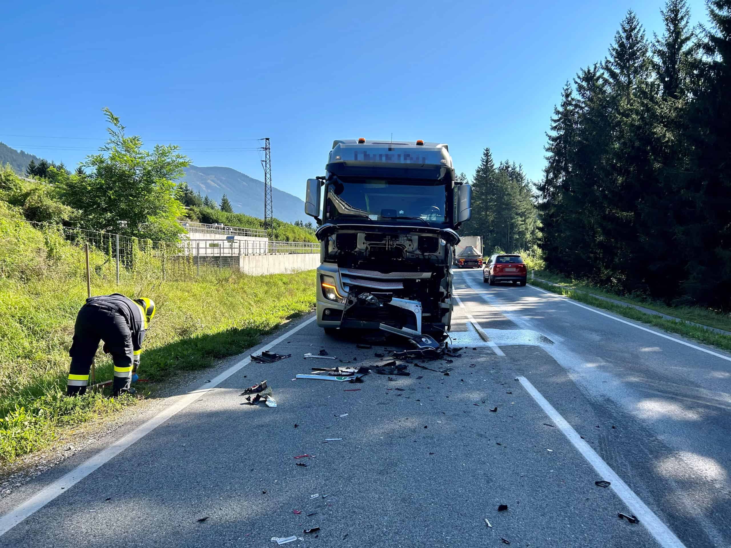 Auf der B146-Gesäuse Bundesstraße ereignete sich am Dienstag, 5. September 2023 gegen 9:20 Uhr, im Bereich der Autobahnauffahrt Ardning, ein Verkehrsunfall mit zwei beteiligten Lkw.