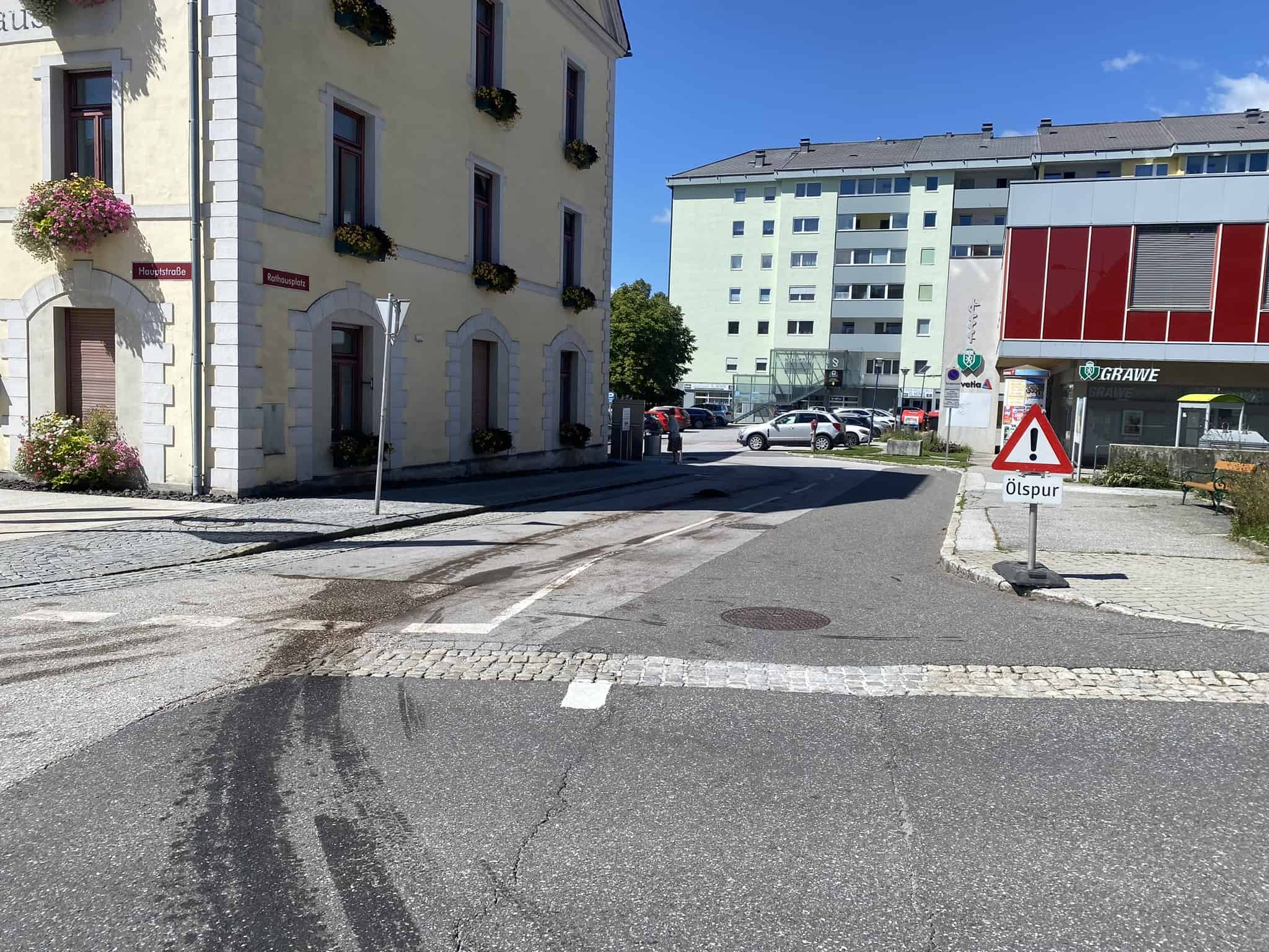 Die Spur an verlorenen Betriebsmitteln zog sich über den Rathausplatz hin zur Hauptstraße (B138) und weiter bis zu Parkplätzen entlang dieser. Über eine Länge von rund 250 Meter wurde mittels Ölbindemittel gegen die Treibstoffspur vorgegangen. Abschließend wurde eine Reinigung der betroffenen Strecke durch die Kehrmaschine des Städtischen Bauhofs vorgenommen.
