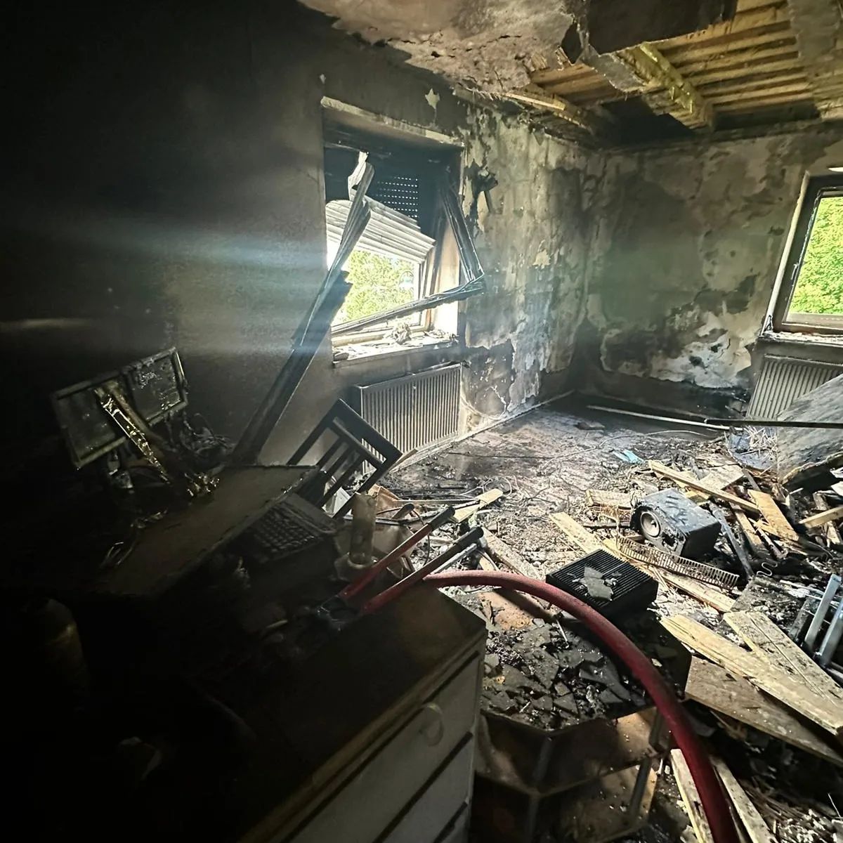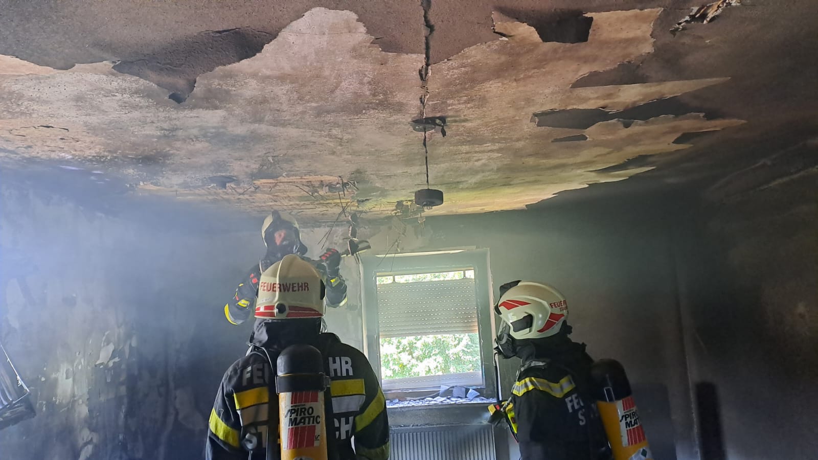 Die enorme Hitzebelastung der Atemschutzgeräteträger sowie die Aufgabe, die Zwischendecke abtragen zu müssen, gestalteten diesen Einsatz als äußerst herausfordernd und schweißtreibend.