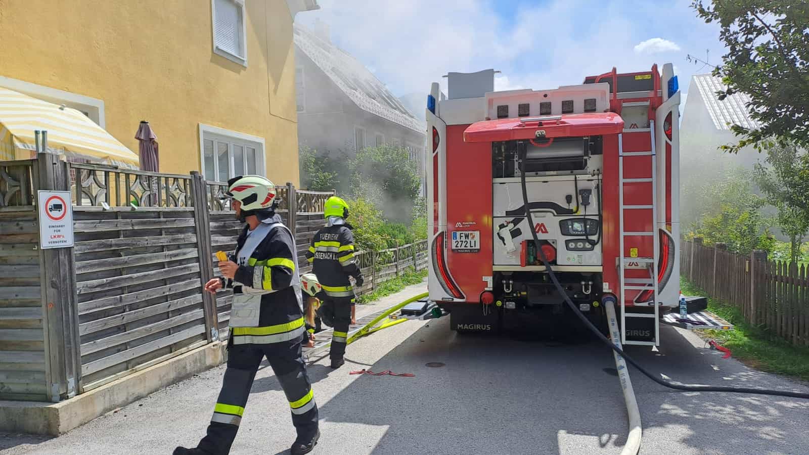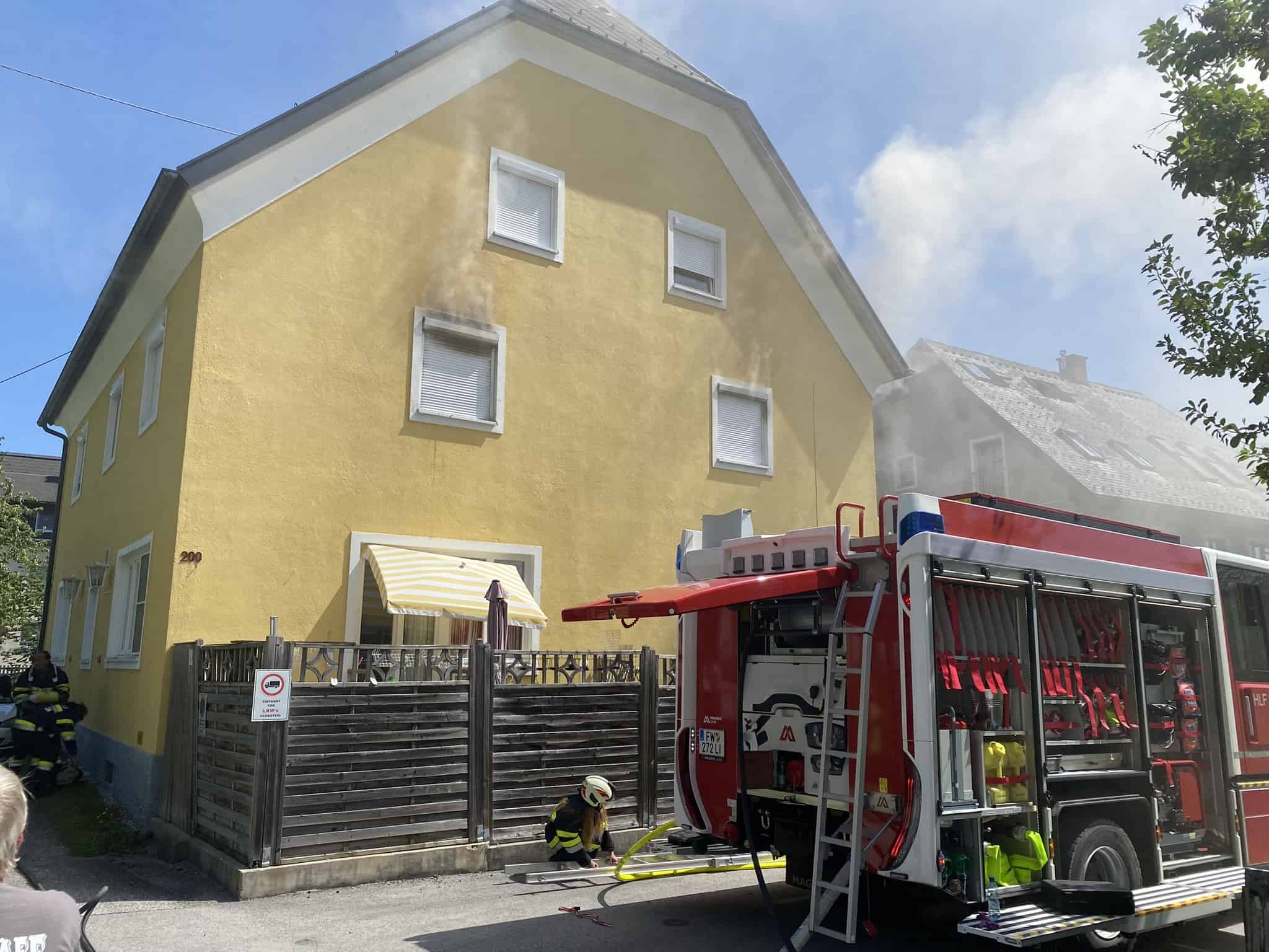 Gegen 12:30 Uhr erfolgte der Erstalarm für die Feuerwehren Wörschach und Weißenbach b. Liezen. Aufgrund der starken Rauchentwicklung und der vorerst unklaren Lage im Inneren des gesamten Wohnhauses entschloss sich der Einsatzleiter der örtlichen Feuerwehr Wörschach, weitere Feuerwehren nach zu alarmieren.