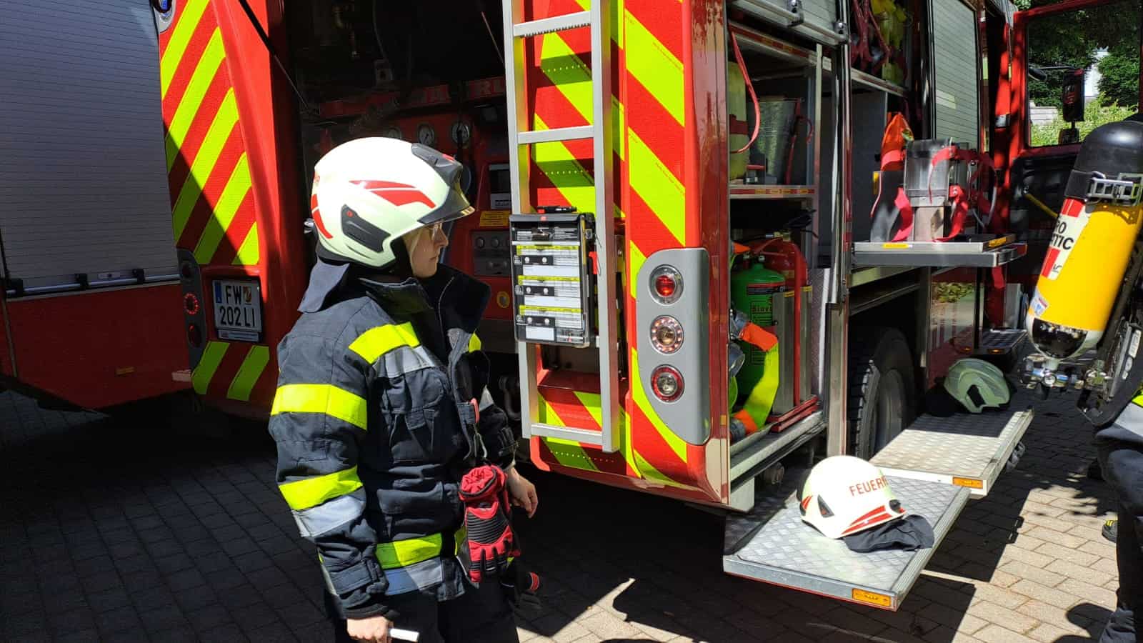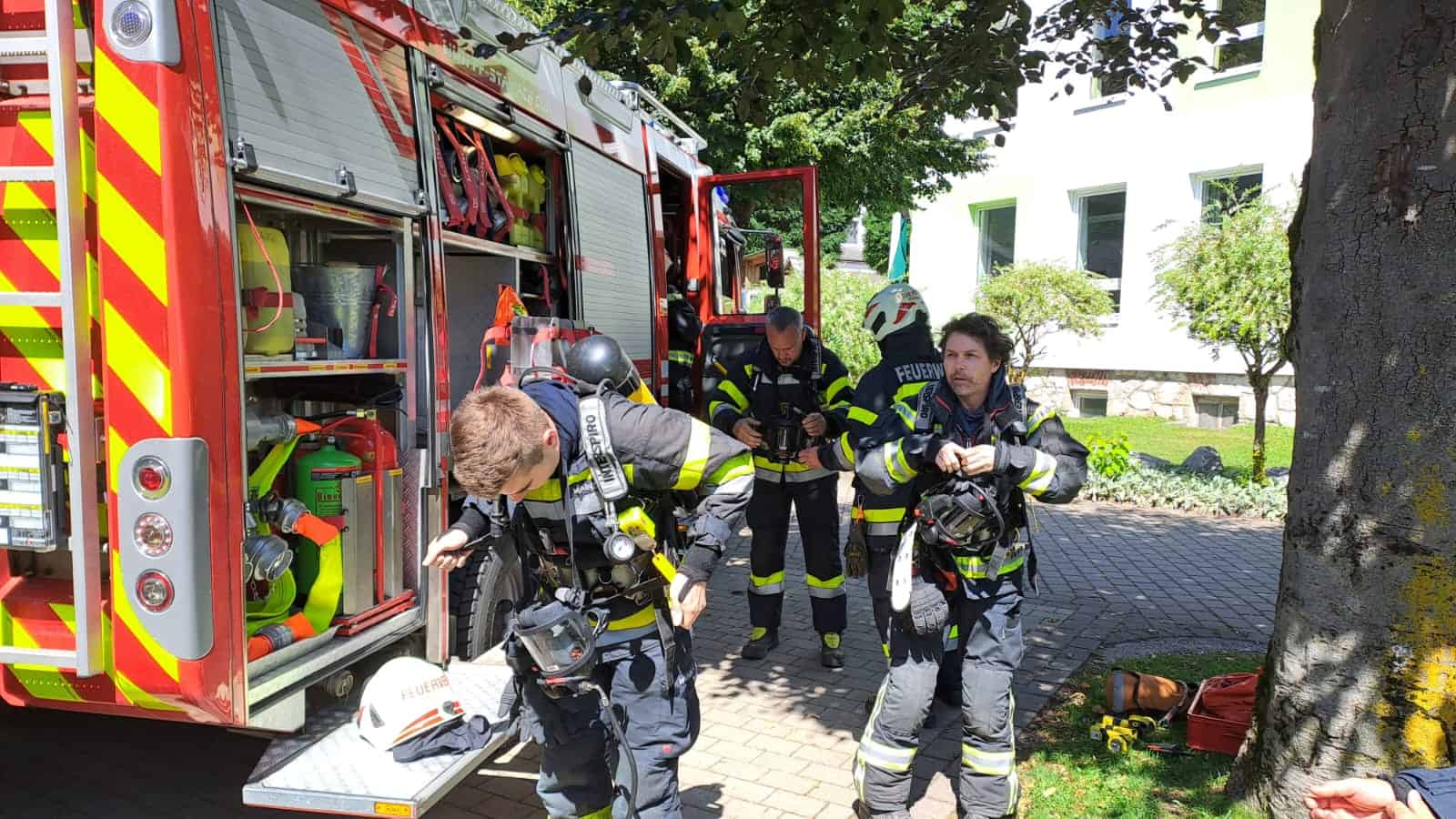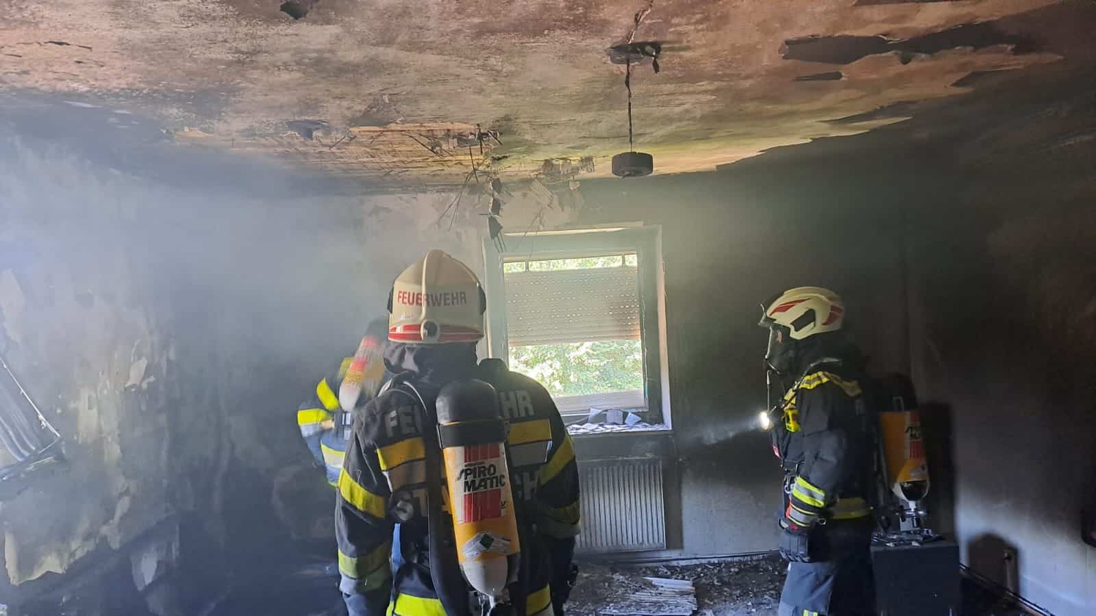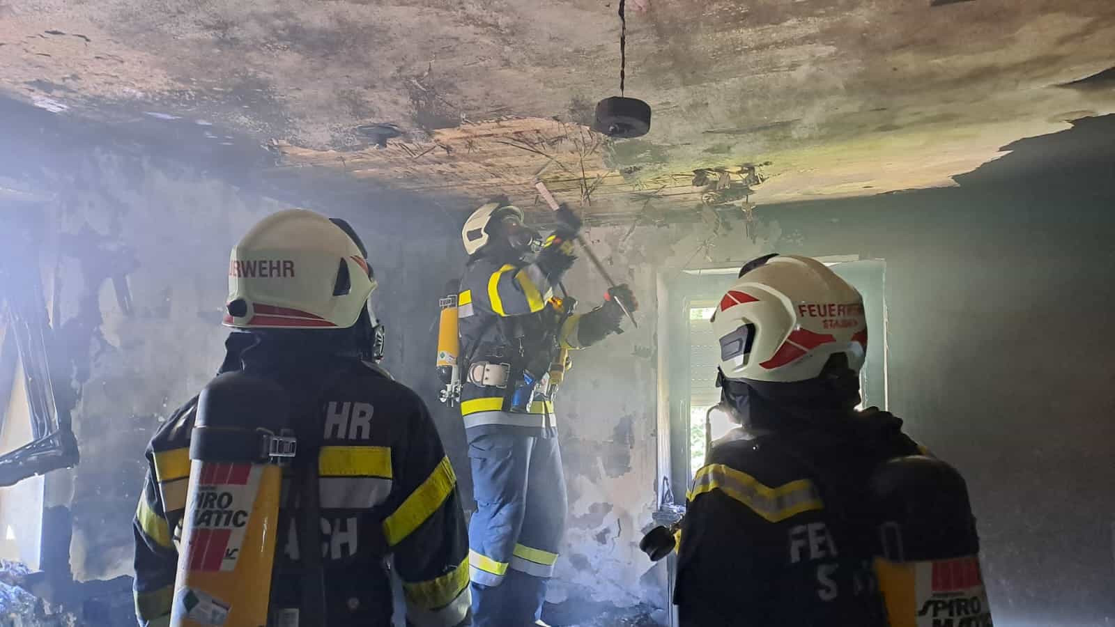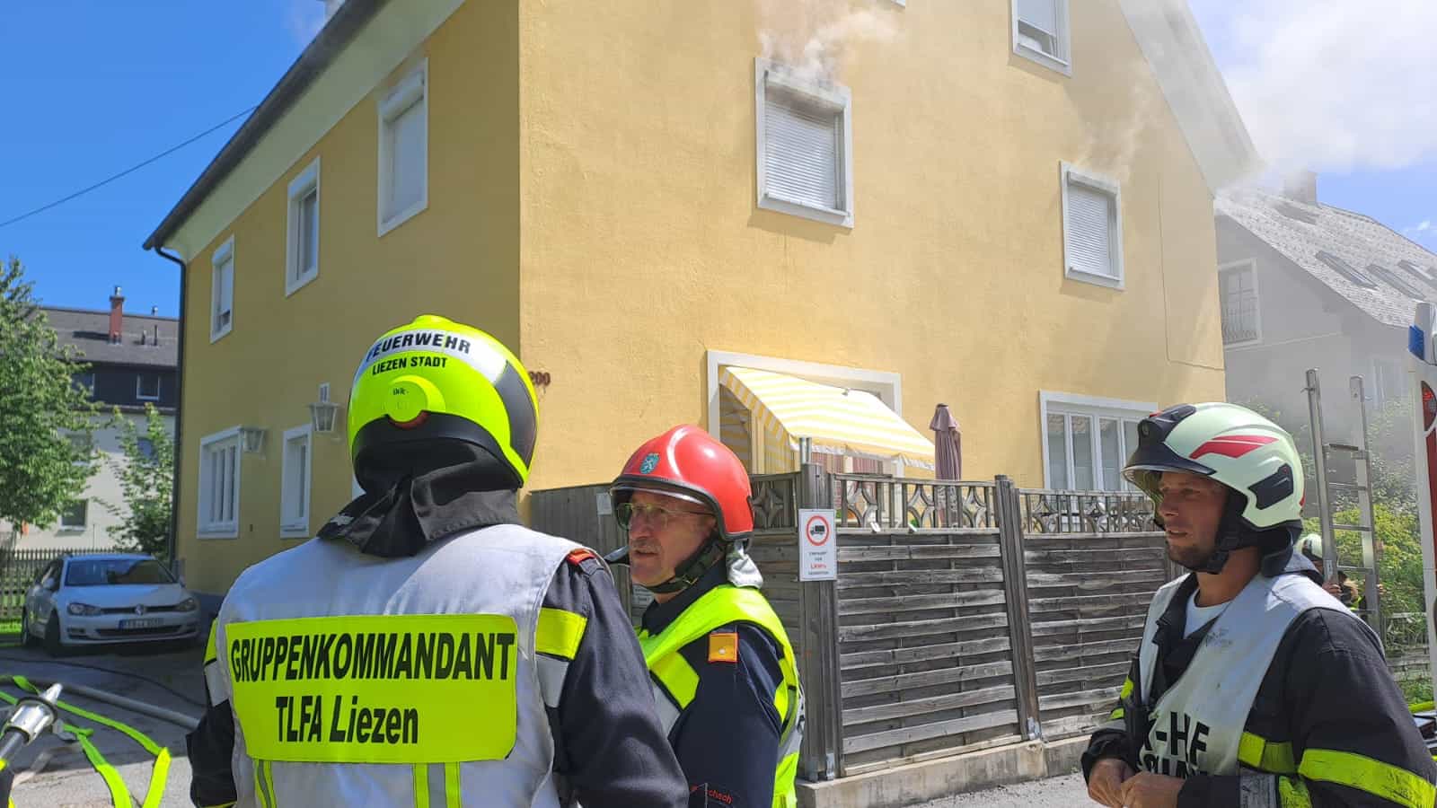 Um 12:47 Uhr wurden daraufhin die FF Liezen-Stadt und die FF Stainach, mit der Anforderung jeweils eines schweren Atemschutztrupps, alarmiert. Der Atemschutztrupp der Feuerwehr Liezen-Stadt übernahm die weitere Durchsuchung der verrauchten Wohnungen im ersten Obergeschoss nach vermissten Personen – dies war zu Einsatzbeginn noch nicht klar – sowie im Anschluss die Suche nach dem Brandherd und erste Löscharbeiten.