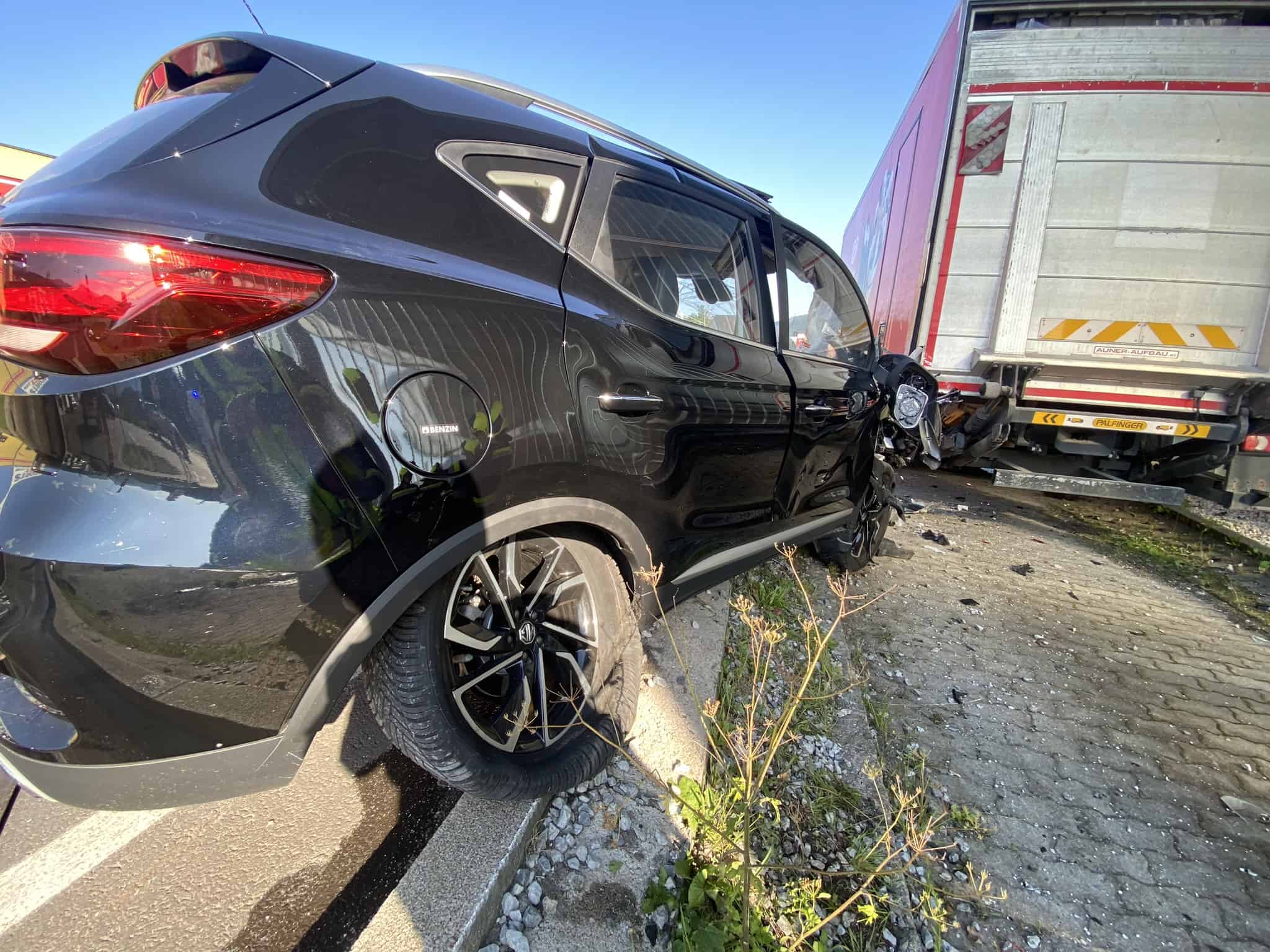 Zusammenstoß zwischen Pkw und parkendem Lkw